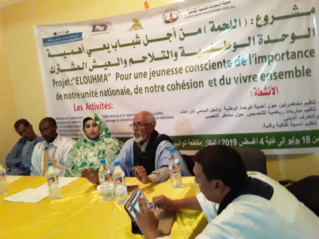 Coordonné par l’Association El mejabatt pour le développement culturel sur financement de l’union européenne dans le cadre de son appui sectoriel à la société civile mauritanienne,le projet Elouhma s’exécute à Nouadhibou dans un cadre partenarial fondé par trois (3) OSC – Organisations de la Socièté Civile ; à savoir l’association des volontaires pour l’alpabitisation,l’association des amateurs du téatre et l’assiciation coordinatrice Elmejabatt.