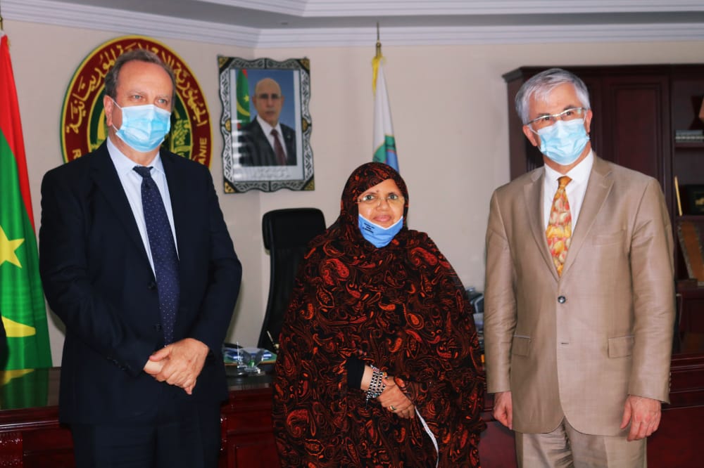 Madame Fatimetou Mint Abdel Malik, Présidente de la Région de Nouakchott, a reçu dans son bureau ce matin Monsieur Philipe Lacoste Directeur du Développement Durable au Ministère Européen pour les Affaires Etrangères Françaises en compagnie de Pierre Yves Bertrand, Conseiller Chargé de la Coopération et de l’Action Culturelle à l’Ambassade de France à Nouakchott et Monsieur Frederik Olfo Attaché à la Coopération à l’Ambassade.