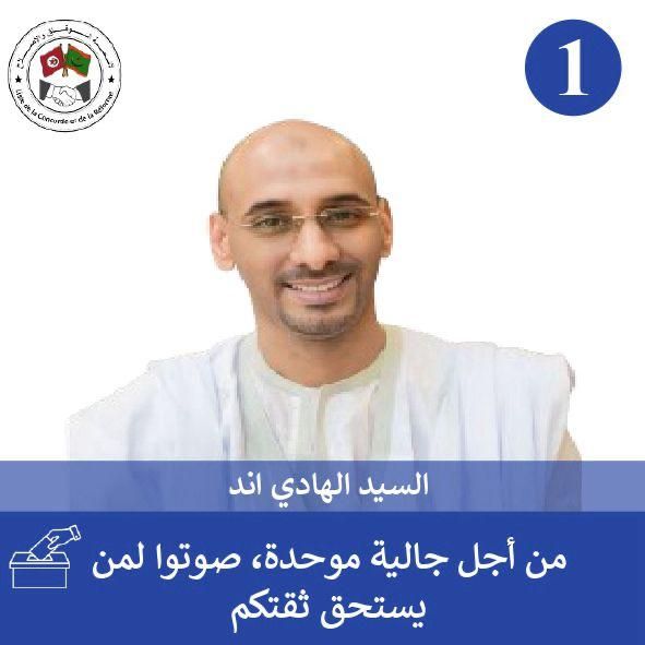Le trés respecté Elhadi Ould Enda, cet homme sérieux connu pour son engagment au service de la colonie mauritanienne vivant en République sœur de Tunisie dont il est le président sortant, il brigue aujourd’hui un deuxième mandat à sa tête; l’homme ne veut pas cesser de servir le bien être de sa colonie dont il a toujours été le fidèle serviteur non égalé.