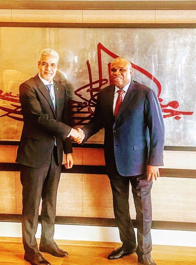 Son Excellence le ministre de l’Économie et des Finances, M. Sid’Ahmed Ould Bouh, a tenu lundi à Casablanca, en marge du sommet financier africain organisé au Royaume du Maroc, une réunion avec le président de la Banque africaine d’import-export (Afreximbank), M. Benedict Oramah.